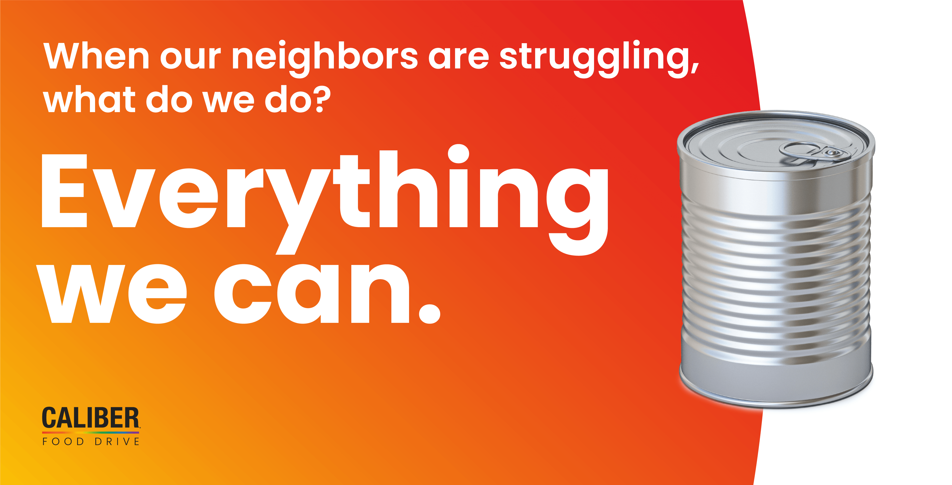 No one should have to wonder where their next meal is coming from. The Caliber Food Drive is our way of standing beside families in their hardest moments, offering comfort, care, and the simple dignity of a full plate. This year, join us in our most ambitious goal yet, as we aim to provide 8.5 million meals for those in need. Because restoring the rhythm of lives starts with restoring hope.